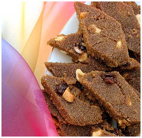 - In a heavy bottomed, non-stick pan, melt margarine and sauté cashews and raisins until nuts turn light brown.