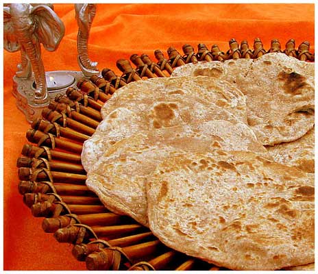 - Apply wheat flour to each ball and roll into thin diskettes about 5 inches round.