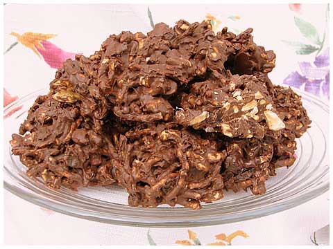 - Place plastic wrap on a cookie sheet and drop the mixture by spoonfuls in desired shapes.